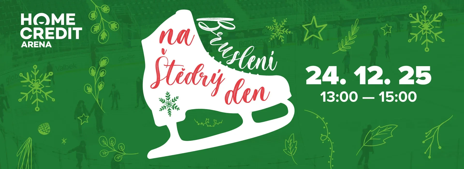 Adventní čas a Vánoce se opět blíží. Chcete prožít Štědrý den a čekání na Ježíška netradičně? Přijďte si po obědě s celou rodinou zabruslit. Pouze na Štědrý den pro vás připravíme led přímo v Home Credit Areně. Brusle si přineste vlastní (půjčovna bude na Štědrý den uzavřena). Veřejné bruslení bude probíhat od 13.00 do 15.00 hod., pro vstup využijte vchod P (plocha).